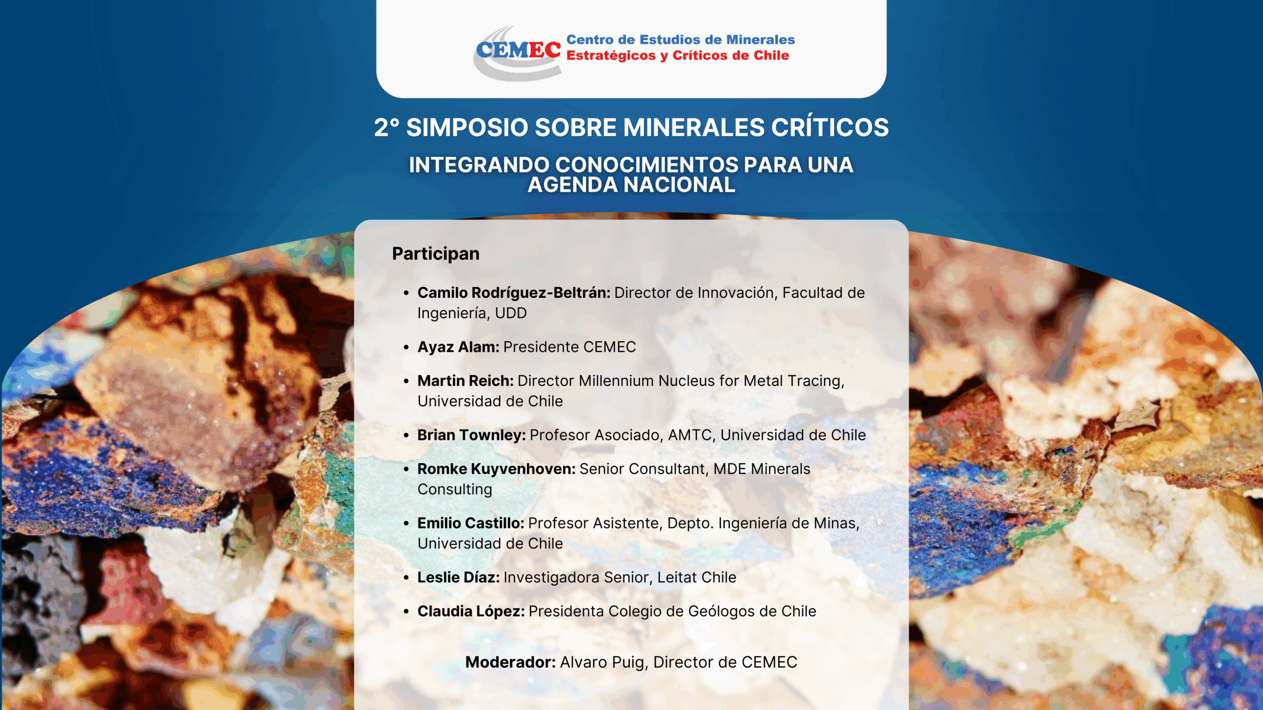 Este simposio es una actividad gratuita y abierta al público, orientada a académicos, investigadores, sector productivo, autoridades, estudiantes y personas interesadas en el desarrollo sostenible del sector minero.